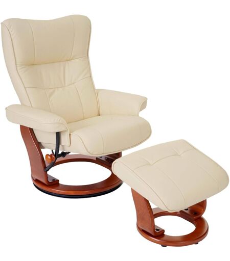 HHG Robas Lund fauteuil relax Montreal, fauteuil de télévision, tabouret, cuir, charge 130kg, crème, doré