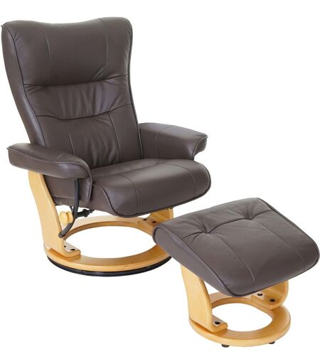 HHG - Robas Lund fauteuil relax Montreal, fauteuil de télévision, tabouret, cuir, charge 130kg, marron, nature