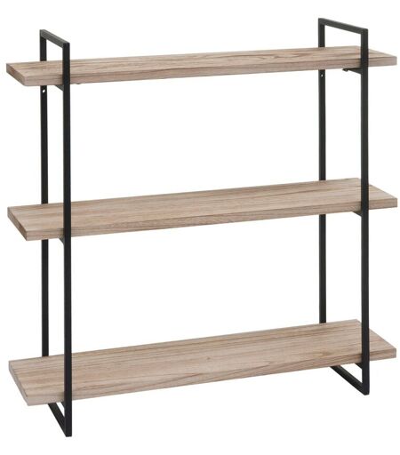 HHG - tagère murale 631, Étagère suspendue, 3 étagères Bois massif industriel 60x60x18cm, naturel, métal noir