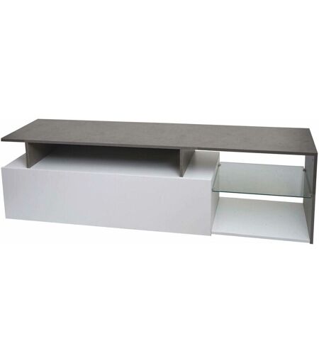 HHG - Meuble tv 639, Lowboard Table tv Sideboard Armoire tv Commode, bois 47x170x40cm Compartiment de rangement, aspect béton blanc