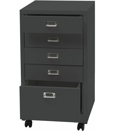 HHG - Caisson à roulettes 456, armoire à tiroirs acier armoire à dossiers, métal 75x40x41cm 5 tiroirs, gris foncé