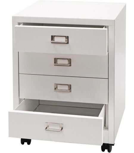 HHG - Caisson à roulettes 423, armoire à tiroirs acier armoire à dossiers, métal 55x40x41cm 4 tiroirs, blanc