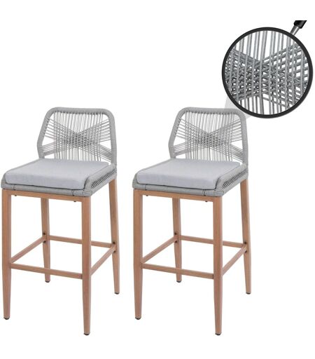 Mendler Lot De 2 Tabourets De Bar Rope Hwc-O21, Coussins D'assise Extérieurs En Corde Tressée Métal Aspect Bois Gris Clair, Coussins Gris Clair