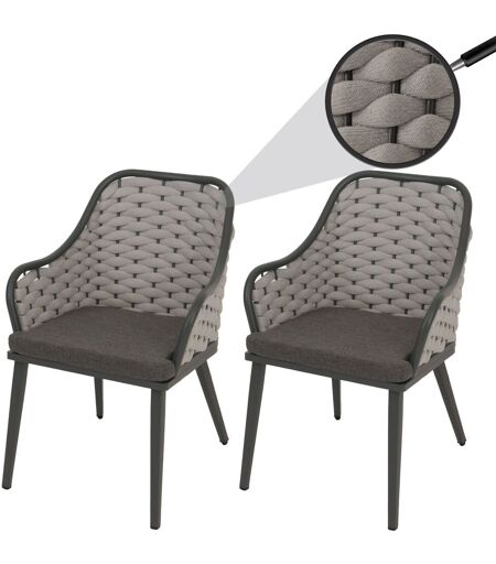 Mendler Set De 2 Chaises De Jardin En Aluminium Hwc-O16, Chaise D'extérieur, Olefin (200 G/M²) Corde Tressée Rope Gris Clair Coussin Gris Foncé