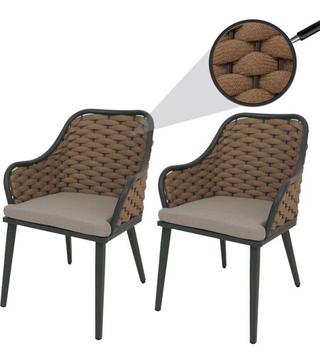 Mendler Set De 2 Chaises De Jardin En Aluminium Hwc-O16, Chaise D'extérieur, Olefin (200 G/M²) Corde Tressée Rope Beige Coussin Marron Clair