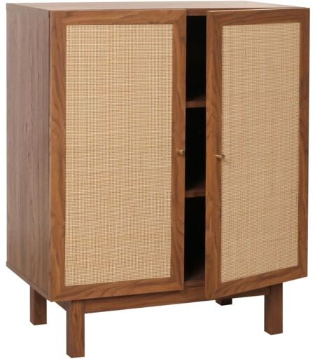 HHG - Highboard 394, Commode Armoire Sideboard, compartiments de rangement, rotin Kubu 98x79x42cm, aspect noyer
