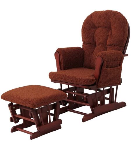 HHG - Fauteuil relax 033, fauteuil à bascule Fauteuil oscillant + pouf Tissu Bouclé 480g/m² Öko-Tex, brun rouille Bâti foncé