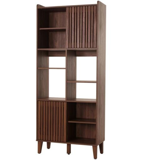 HHG - Bibliothèque 425, bibliothèque haute, porte coulissante 8 compartiments de rangement mdf 178x75x35cm, aspect noyer