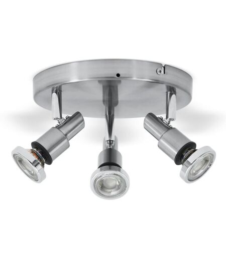 Description générale Le plafonnier LED Aurel 3 de B.K.Licht est un luminaire moderne et élégant, parfait pour illuminer diverses pièces de votre maison, y compris la salle de bain, la cuisine, et les espaces de vie. Avec son indice de protection IP44, il est résistant aux projections d'eau, ce qui le rend idéal pour des installations dans des zones humides. Ce modèle est équipé de trois spots orientables qui permettent un éclairage personnalisé selon vos envies. Spécifications techniques Matière : métal, finition nickel-mat-chromé Voltage : 230V Type d'ampoules : GU10 LED 5W incluses Couleur de la lumière : 3000 Kelvin (blanc chaud) Intensité lumineuse : 400 Lumen Durée de vie des ampoules : environ 20.000 heures Niveau de protection : IP44 Dimensions : 210 x 210 x 106 mm Faisceau lumineux : 36° Non dimmable Compatibilité et accessoires Inclus dans la livraison : 1 plafonnier à 3 spots 3 ampoules GU10 5W 1 kit d'installation Installation Le plafonnier peut être installé au plafond ou ...