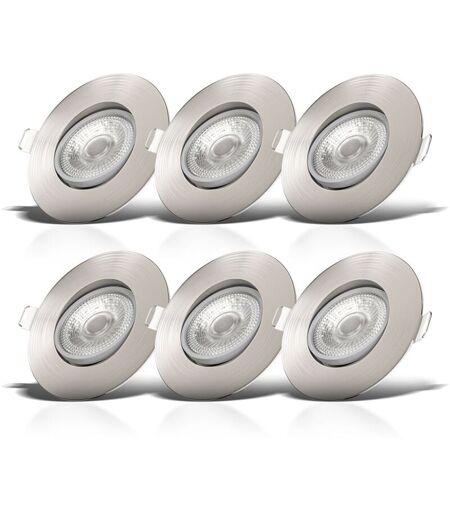 B.K.Licht lot de 6 spots à encastrer IP23 ultraplats 24mm, orientables, Ø90mm, nickel mat, éclairage plafond encastrable, platines LED 5W, 460Lm, blanc chaud 3000K QUALITE ? lot de 6 spots à encastrer en finition nickel matte, orientables, durables et ultraplats (24mm). La solution idéale pour un éclairage adapté à vos besoins pour toutes vos pièces : salon, salle à manger, cuisine couloir, chambres, bureau. ECLAIRAGE ? les platines LED 5 Watt intégrées offrent une excellente intensité lumineuse de 460 Lumen par spot pour un éclairage puissant d?un très joli blanc chaud de 3000 Kelvin. Les spots sont orientables afin de parfaitement illuminer vos pièces. L?index de rendu des couleurs CRI>80 garantit des couleurs parfaitement naturelles. Les spots ne requièrent pas de transformateur, ils se branchent directement aux 230V (simplement avec un domino ou une boîte de connexion de type WAGO, pas inclus). ECONOMIQUE ? la technologie LED la plus récente vous assure des économies d'énergie ...