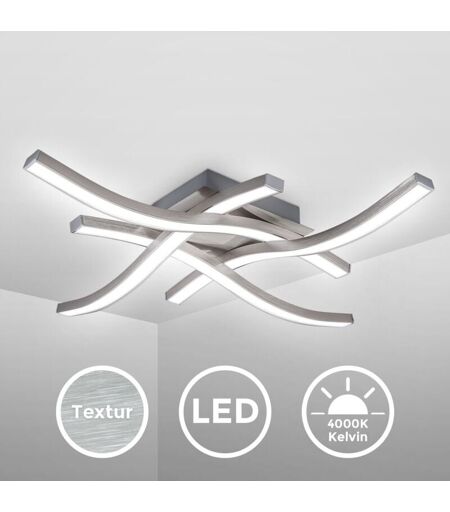 B.K.Licht plafonnier LED design moderne, éclairage plafond en forme de vague, modules LED 17W intégrés, 1520Lm, lumière blanche neutre 4000K,