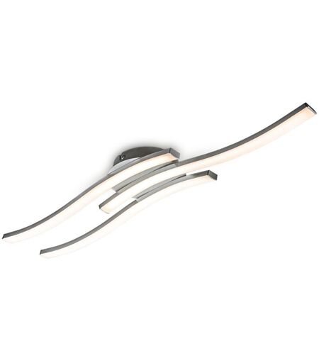 B.K.Licht plafonnier LED design moderne, éclairage plafond en forme de vague, modules LED 3x6W intégrés, 3x480Lm, lumière blanche chaude 3000K, finition aluminium, longueur 565mm DESIGN ? avec son style résolument moderne, cette applique en forme de vague courbée attirera tous les regards et illuminera la beauté de vos espaces de vie, comme le salon, la salle à manger, la cuisine, le couloir ou les chambres. ECLAIRAGE ? 3 modules LED intégrés d?une puissance de 6 Watt et d?une intensité lumineuse de 480 Lumen chacun offrent un très bel éclairage blanc chaud de 3000 Kelvin pour une atmosphère accueillante et chaleureuse. Les barres LED sont fixes, pas orientables. ECONOMIQUE ? la technologie LED vous assure des économies d'énergie jusqu'à 80% par rapport à des ampoules conventionnelles et une durée de vie exceptionnelle de 20.000 heures. TOUT INCLUS ? plafonnier LED courbé, 3 platines LED de 6 Watt, 18 Watt au total, intensité lumineuse de 3 x 480 Lumen, 1440 Lumen au total, lumière ...