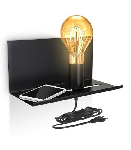 B.K.LICHT Applique murale réglable luminaire mural rétro lampe de chevet avec étagère interrupteur finition noire matte