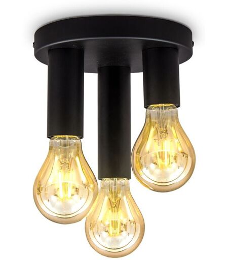 B.k.licht - Plafonnier rétro 3 douilles pour ampoules 10W max métal noir mat éclairage design plafond chambre-salon-salle à manger Ø19x16,5cm
