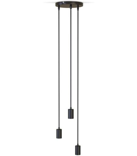 SUSPENSION : ce lustre de design rétro est équipé de trois douilles E27 de différentes hauteurs. Nous recommandons des ampoules Edison ou à filaments dune puissance maximale de 10 Watt par ampoule afin de souligner laspect vintage. Veuillez noter, les ampoules ne sont pas fournies. DESIGN : avec son design industriel, cette lampe pour plafond en finition noire matte devient la pièce maitresse de vos espaces de vie : installée dans le salon, la salle à manger ou la chambre, elle attirera tous les regards. DIMENSIONS : le plafonnier mesure 210mm en diamètre pour une hauteur totale de 1200mm. La plaque de fixation est dun diamètre de 210mm, les trous de fixation sont à une distance de 180mm. Les 3 câbles à douille ont une longueur comprise entre 850 et 1800 mm et ne sont pas réglables en hauteur. MONTAGE: pour votre confort, tout le matériel nécessaire au montage est inclus : 2 vis, 2 chevilles ainsi que des instructions de montage claires assurant une installation aisée. SERVICE CLIENT: ...