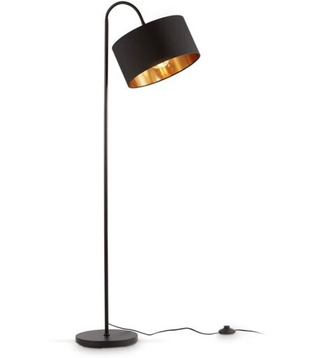 B.k.licht - Lampadaire rétro pivotant i abat-jour en tissu noir et doré i E27 i câble de 140 cm i salon i chambre i moderne