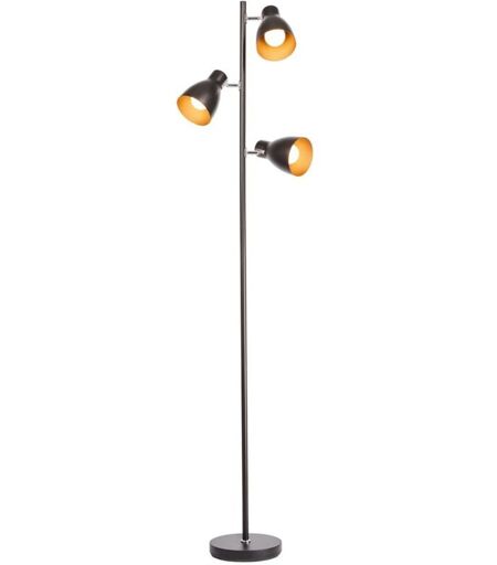 B.k.licht - Lampadaire design métal 3 spots noir-doré vintage retro spots orientables pivotables