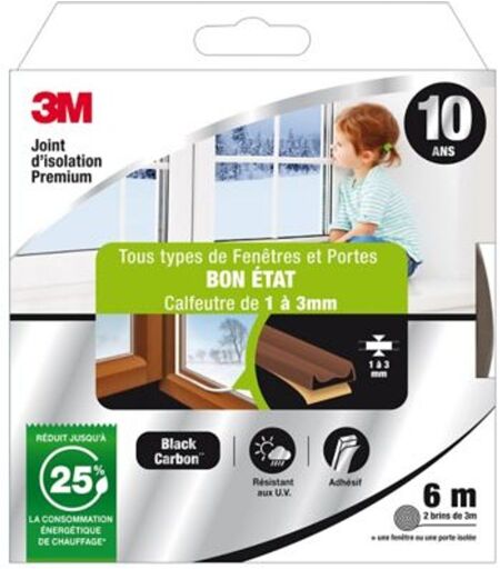 Joint adh?sif porte et fen?tre bon ?tat 3M Premium 1 ? 3 mm marron L.6 m