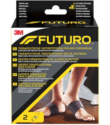 Les orthèses de soutien thérapeutique FUTURO™ de 3M assurent le soutien du pied, de la voûte plantaire et du talon pour soulager la douleur causée par la fasciite plantaire.BénéficesGrâce à sa finesse, il peut être porté avec ou sans chaussettes et/ou chaussures.Apporte compression, soutien et amortissementMatériau respirant.Taille ajustable : 21,5 - 30,5 cmCompositionThermoplastic elastomer, polypropylene, nylon, polyester, polyurethane, spandex.IndicationsSoutien du pied, de la voûte plantaire et du talonConditionnement2 bandes de soutien ...