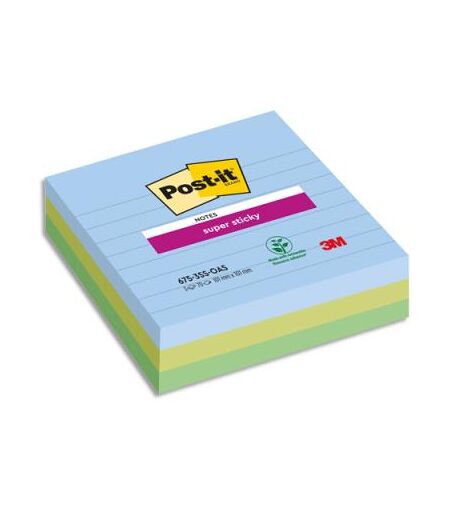 Notes Post-It Super Sticky Grand Format Lignées Oasis - 101 x 101 mm - 3 blocs, 70 F - Ass : bleu et vert