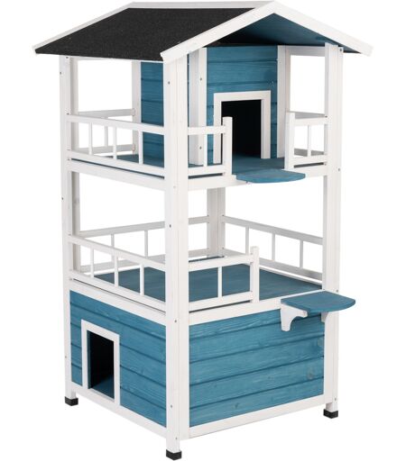 Maisonnette Penthouse L 72 x l 72 x H 124 cm bleu / blanc - pour chat