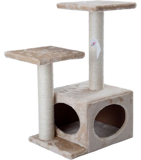 Malgré sa petite taille, cet arbre à chat possède tout ce qu'un arbre à chat doit avoir : espace pour s'amuser, se cacher, se reposer et bien entendu faire ses griffes. Les deux plates-formes permettront à votre chat d'observer son territoire. Une... ...
