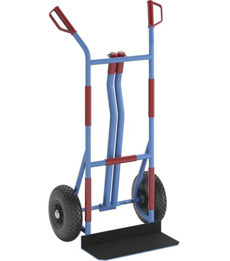 Diable en acier, modèle: diable polyvalent, avec barres de transport pratiques. Produit livré = monté. Version = diable pour charges fragiles. Force = 350 kg. Largeur bavette = 450 mm. Profondeur bavette = 180 mm. Bandages = pneumatiques. Diamètre roues = 260 mm. Roulement = roulement à rouleaux. Matériau = acier. Coloris = bleu clair RAL 5012. Surface = peint époxy. Hauteur = 1120 mm. Largeur = 580 mm. Poids = 16 kg. Largeur plateau = 400 mm. Type de produit = diables soudés. Déplacement sûr, port confortable. Bavette à revêtement caoutchouc. Barres de transport pratiques. Diable robuste en acier soudé peint époxy bleu clair RAL 5012. Diable Premium pour usage quotidien équipé de poignées de sécurité, pneumatiques souples, profil structuré robuste et moyeux lisses. La bavette supportant de lourdes charges, revêtue de caoutchouc profilé et les deux barres de transport antidérapantes permettent la manutention aisée de marchandises lourdes et fragiles. Idéal pour caisses, boîtes, colis, ...
