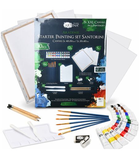 Set Santorin de 30 pièces avec Toile, 12 Couleurs acryliques - Artina