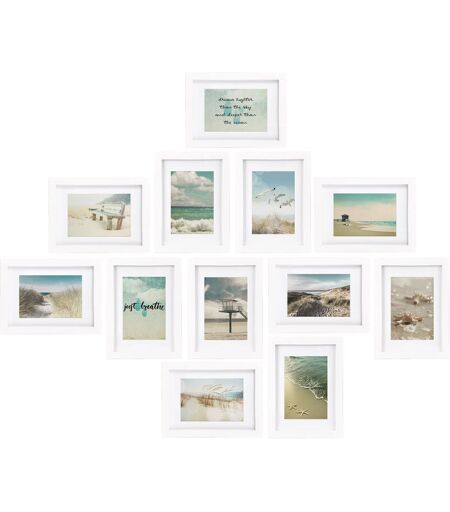 Set de 12 Cadres Photos Multi-Vues Océan – Pêle-Mêle décoration murale pour Chambre Salon Bureau Maison - 12 x 13 x 18 cm Blanc - Bomoe
