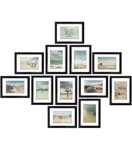 Set de 12 Cadres Photos Multi-Vues Océan – Pêle-Mêle décoration murale pour Chambre Salon Bureau Maison - 12 x 13 x 18 cm Noir - Bomoe