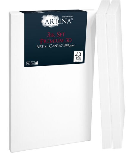 Artina 3D Toile Peinture sur Châssis Bois pour Toile Fait de 100% de Coton 380g/ m² - Toile Vierge 3 Fois Peinte au préalable - Lot de 318cm, 24cm