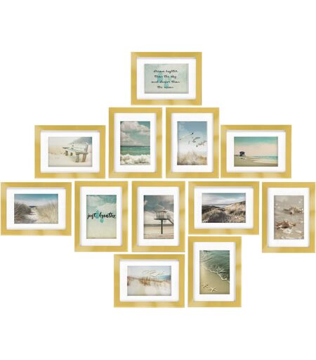 Set de 12 Cadres Photos Multi-Vues Océan – Pêle-Mêle décoration murale pour Chambre Salon Bureau Maison - 12 x 13 x 18 cm Or - Bomoe