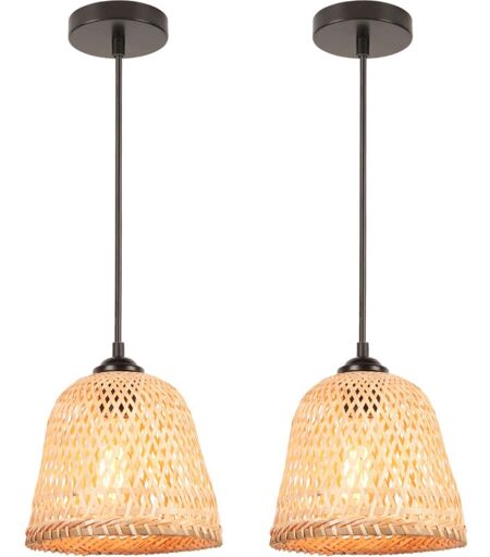 NORCKS 2PCS) 20CM Lustre En Bambou Lampe De Plafond Rétro Moderne Luminaire Plafonnier D'Intérieur