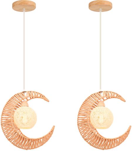 NORCKS 2X-Suspension Luminaire Tissé En Corde De Chanvre Suspension Lustre Lunaire Lustre D'Intérieur Rétro Plafonnier Moderne