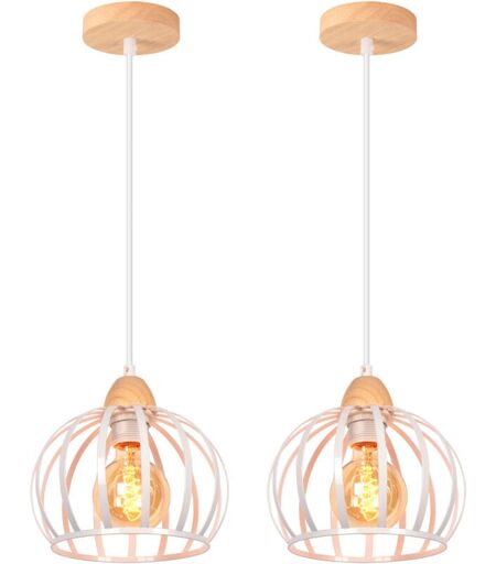 NORCKS 2PCS Suspension Luminaire Vintage Intérieur Lustre Moderne Plafonnier Rond En Métal Fer Pour Ferme Couloir Cuisine Blanc