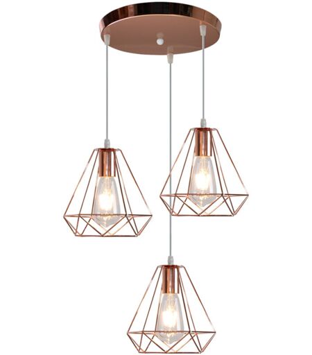 NORCKS 200MM Lustre Diamant Rétro Industriel Suspension Luminaire Vintage Plafonnier Hauteur Réglable 3 Supports De Lampe Suspension Or Rose
