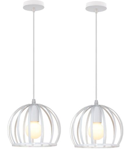 NORCKS 2PCS Suspension Luminaire Vintage Lustre Moderne Plafonnier Rond En Métal Fer Pour Cuisine Ferme Couloir Intérieur Blanc