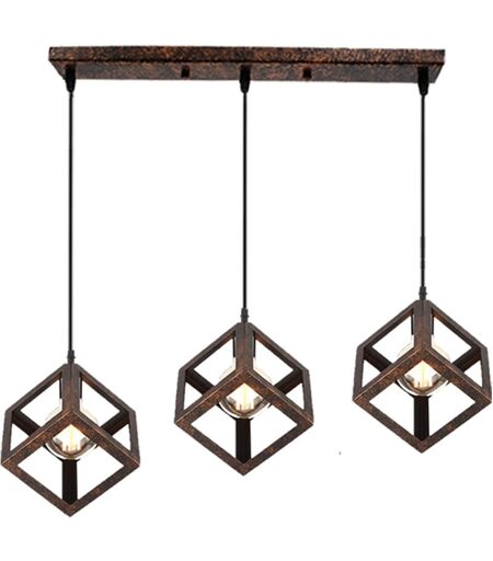 NORCKS Lustre Creative Cube Plafonnier Antique à 3 Lumières Suspension Luminaire Rétro En Métal, Pour Bureau, Chambre à Coucher, Cuisine, Bar, E27
