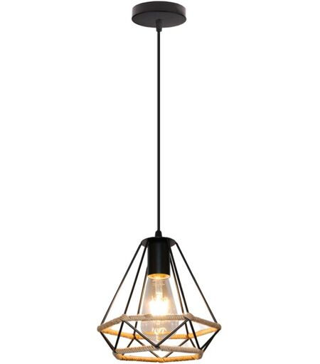 NORCKS Lustre Rétro En Diamant Noir, Lampe à Suspension En Corde De Chanvre 20CM Plafonnier D'Intérieur Pour Chambre à Coucher Loft
