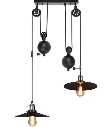 NORCKS Lampe à Suspension Vintage Lustre à Poulie Rétro Antique 2 Lumières Suspension Luminaire En Métal Noir Douille E27, Plafonnier D'Intérieur