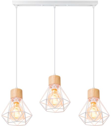 NORCKS Lampe à Suspension Vintage Suspension Luminaire Rétro Blanche à 3 Lumières, Plafonnier D'Intérieur Moderne En Métal Et En Bois