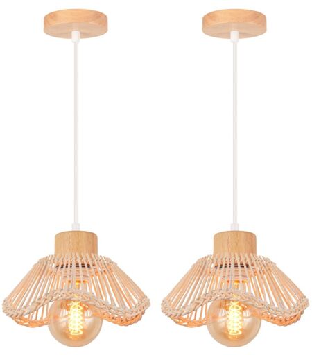 NORCKS 2PCS) Plafonnier Moderne Lampe De Plafond En Osier Lampe à Suspension Rétro Lustre Intérieur Lampe à Suspension en Rotin Tressé