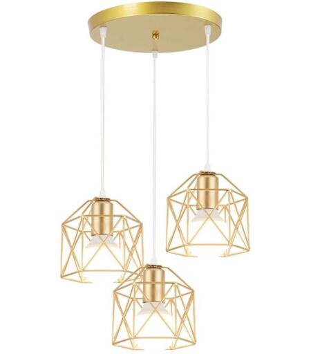 NORCKS Lampe À Suspension Moderne Or 3 Lumières Suspension Luminaire En Métal Rétro Plafonnier D'Intérieur Pour Chambre À Coucher, Café Et Bar