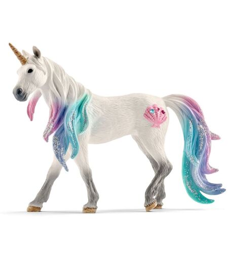 Figurine en plastique peinte à la main représentant une licorne des mers jument. Dimension de la figurine : 13,5 x 3.5 x 11 cm environ. Age minimum : 5 ans ...