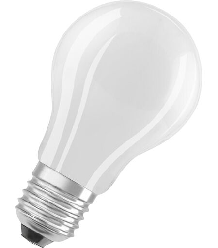 Lampes LED gradables, forme classique. Caractéristiques produit: Lampes LED professionnelles pour tension secteur. Gradable (avec de nombreux gradateurs classiques, voir également "www.ledvance.fr/dim"). Ouverture du faisceau : jusqu'à 360°. Durée de vie : jusqu'à 15 000 h. Lampe en verre. Bonne qualité de la lumière ; indice de rendu des couleurs Ra: ≥ 80; chromaticité constante. Avantages produits: Lampes avec technologie de « filament » LED innovante. Très basse consommation d'énergie. Pas d'émission d'UV ni d'IR dans le faisceau lumineux. Allumage instantané. Peut remplacer facilement les lampes standard. Puissance thermique plus faible (par rapport au produit de référence standard). Conception, dimensions, flux lumineux comparables à une lampe halogène. Domaines d'application: Idéal pour les installations décoratives. Applications domestiques. Eclairage général. Utilisation extérieure uniquement dans des luminaires extérieurs (minimum IP65). ...