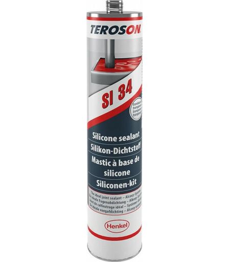 Teroson SI 34 - Applicable au pistolet. Sans solvants. Mastic d'étanchéité monocomposant à base de caoutchouc de silicone à réticulation neutre - Réticulation (durcissement) par l'humidité de l'air en un matériau souple et élastique ...