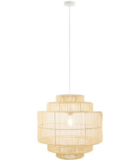 Particularités du produit: Dimensions (L x P x H) : 55 x 55 x 150 cm Abat-jour en rotin Éclairage doux et agréable Suspension en métal robuste Design moderne Finition durable La suspension SIA combine des matériaux naturels avec un design moderne et apporte une atmosphère chaleureuse et confortable dans ton intérieur.L'abat-jour en rotin de qualité supérieure assure un éclairage d'ambiance doux, tandis que la suspension blanche en métal garantit la stabilité et un aspect élégant. Le design aérien de l'abat-jour crée un beau jeu de lumière qui met en valeur ton espace de vie avec style. Grâce à sa finition haut de gamme et à ses matériaux durables, la lampe suspendue ne convainc pas seulement par son aspect, mais aussi par sa qualité et sa fonctionnalité.Que ce soit au-dessus de la table à manger, comme éclairage d'accentuation dans le salon ou comme lumière confortable dans la chambre à coucher - SIA s'intègre sans peine dans différents styles d'habitat. Détails du produit: Abat-jour ...
