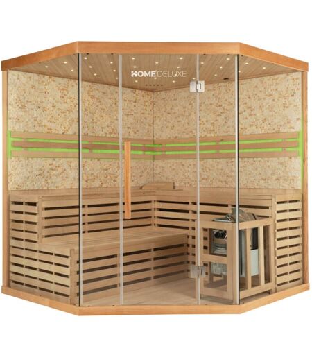 Home Deluxe - Sauna traditionnel avec paroi en pierre artificielle skyline big xl - 200 x 200 cm pour 6 personnes