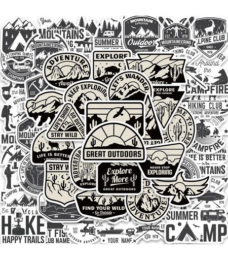 200 pcs Signalisation extérieure tourisme forestier Camping k Autocollants pour la papeterie, les tasses, les carnets, les vélos, les voitures et autres objets décoratifs Autocollants sporti ...