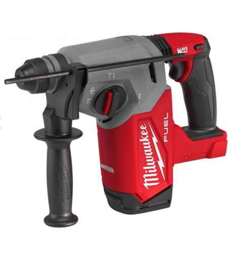 Milwaukee M18 FUEL™ : Vitesse et puissance réunies Découvrez le perforateur sans fil M18 FUEL™, conçu pour les tâches les plus exigeantes. Avec une énergie d'impact de 2,5 J et de faibles vibrations de 12,9 m/s2, vous atteindrez un équilibre parfait entre vitesse et performance. Cet outil vous permet de percer jusqu'a 125 trous de 10x50 mm sur une seule charge avec une batterie M18™ HIGH OUTPUT™ 5,5 Ah, garantissant efficacité et longue durée de vie. Caractéristiques principales pour un travail professionnel La sécurité avant tout : Le mécanisme de sécurité breveté AUTOSTOP™ et l'embrayage de sécurité vous protegent, ainsi que l'outil, dans tous les matériaux. 4 modes de fonctionnement : Perforateur, burinage, perçage simple et fonction Variolock pour une polyvalence maximale. Durée de vie prolongée : Le carter de boîte de vitesses en métal robuste garantit une durabilité a long terme meme dans des conditions difficiles. Environnement de travail propre : Possibilité d'utiliser un systeme d'extraction de poussiere spécial (vendu séparément) pour une évacuation efficace des débris. Spécifications techniques et compatibilité Énergie d'impact (EPTA) : 2,5 J Porte-outil : SDS-Plus Diametre de perçage max. dans le béton : 26 mm Vitesse de rotation : 0 - 1330 tr/min Poids avec batterie : 4,3 kg (M18 HB5.5) Ce modele est 100 % compatible avec toute la gamme de produits MILWAUKEE® M18™. L'emballage comprend une butée de profondeur, une poignée latérale et de la graisse pour engrenages, mais la batterie et le chargeur ne sont pas inclus.> ...